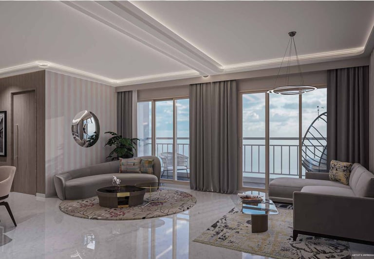 Generous living spaces with premium finishes and panoramic views of Thane’s skyline.